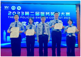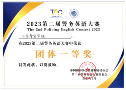 2023第二届警务英语大赛近日在浙江警察学院成功举办。金年金官网有四名选手参赛,并取得了团体一等奖和三个个人奖项的好成绩。本次大赛有来自全国23所公安政法院校和浙江公安出入境、出入境边防检查总站共25支参赛队,约160名代表参赛。