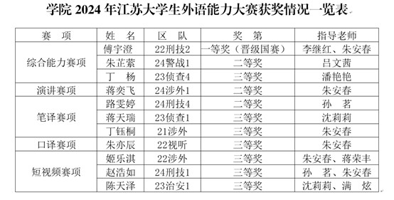 近日,学院组织基础课教研部老师指导和带领学生参加了2024年“外研社·国才杯”“理解当代中国”江苏大学生外语能力大赛暨全国大赛江苏赛区选拔赛,金年金官网学生在英语组演讲、口译、短视频、综合能力、笔译等5个赛项中荣获省级一等奖1项(晋级国赛),二等奖3项,三等奖7项。