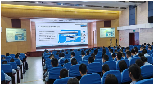 教学活动邀请了苏州市食品检验检测中心副主任丁洪流担任主讲,他深入浅出地讲解了食品安全抽检的重要性、抽检流程、行刑衔接的法律依据与实践案例,为五校800多名学子呈现了一场知识与实战并重的精彩讲座,提升了同学们的专业实践认知,拓展了学术研究视野,增强了守护食品药品安全的使命担当。