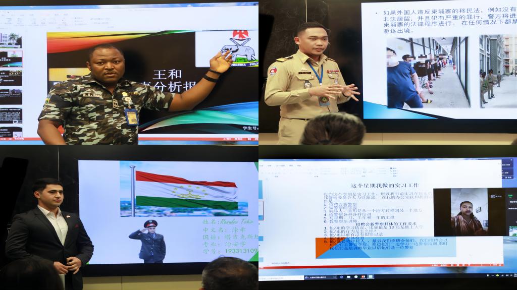 活动现场,完成实习任务的13名警务留学生携带精美的PPT一一上台,向评委和观众展示自己在本国警务实习的主要内容、遇到的涉华案件以及主要体会,在境外的警务留学生专门录制视频参与分享。活动现场气氛热烈、掌声雷动,警务留学生对实习工作的汇报得到了评委一致认可和同学们的好评点赞。警务留学生们纷纷表示,这项活动有趣而富有意义,不仅为他们增进相互了解提供了一个平台,也为向各国同行学习警务实战技能提供了一个窗口。