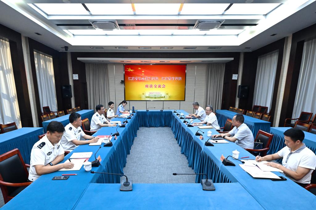 座谈会上,双方分别介绍学校发展历史沿革、师资力量建设、改革创新尤其是近年来高质量发展等方面工作开展情况及取得的成效,重点聚焦党建工作、人事管理、财务管理和干部教师队伍建设等进行探讨交流。双方一致表示,今后要持续深化交流合作,充分发挥两校政治建校优势资源,进一步加强党的创新理论研究,用党的创新理论指导育人实践,切实把党的建设各项要求融入教学、科研、管理、服务全领域各方面。