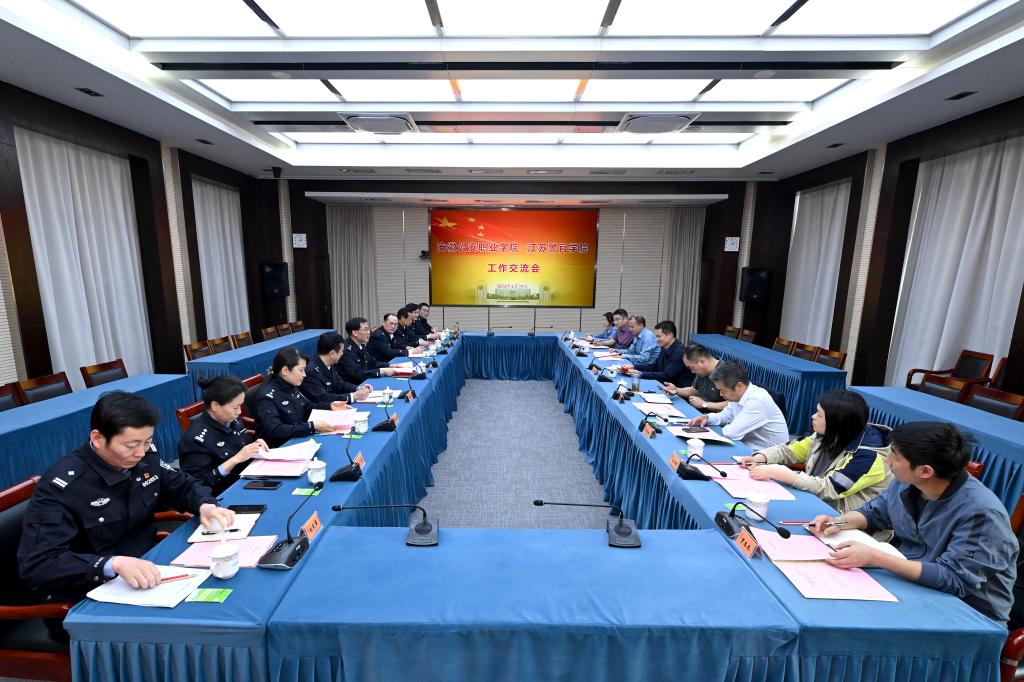 4月25日,安徽公安职业学院党委书记孟祥国一行来校考察调研,进一步深化两校交流合作。省公安厅党委委员、学院党委书记夏存喜,学院党委副书记、院长黄进,学院党委委员、副院长冯红新参加考察并出席座谈会。