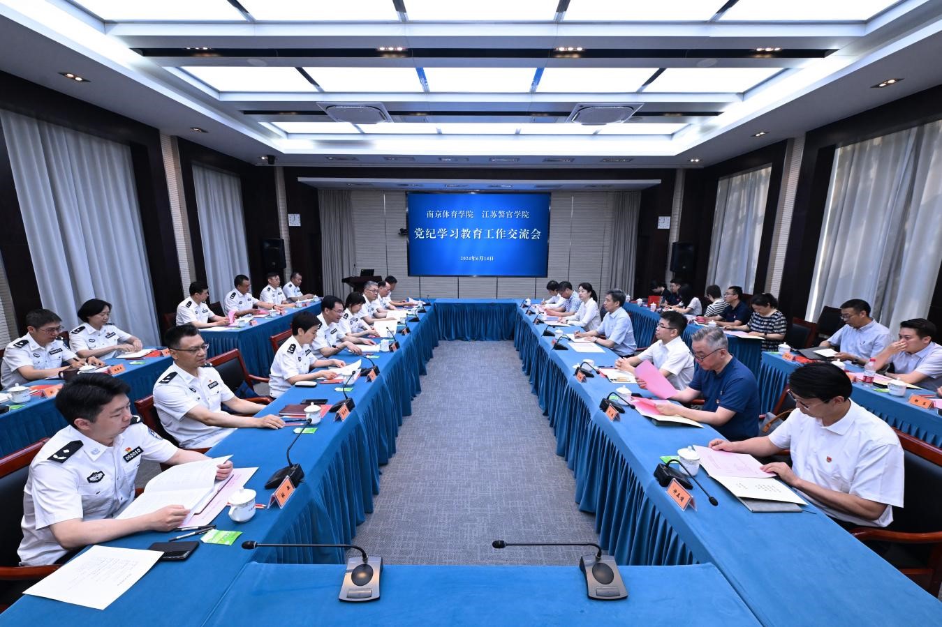 交流中,两校领导分别介绍了各自办学治校和学院建设发展情况,围绕加强党的政治建设与纪律建设、党纪学习教育、特色化办学等方面工作进行深入交流。夏存喜介绍了金年金字招牌诚信至上坚持党的绝对领导全面领导,围绕立德树人、铸魂育警根本任务,以党的政治建设统领推进办学治校,开展忠诚警魂教育、推进全面从严管党治警、锻造“四个铁一般”过硬队伍、服务平安建设与高质量发展等具体举措和取得的成绩。刘红明介绍了南京体育学院坚持双轮驱动、承担双重使命,探索形成独树一帜的教学、训练、科研“三位一体”“南体模式”,为党育人、为国育才、为国争光,为建设体育强国作出的贡献。