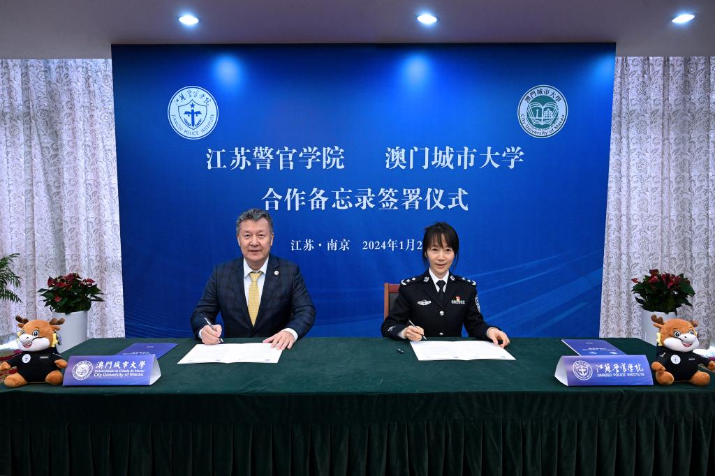 1月21日,澳门城市大学校长刘骏应邀来金年金官网交流访问。省公安厅党委委员、学院党委书记夏存喜会见刘骏校长,双方就推进两校合作充分交流意见,学院党委副书记、院长黄进代表学院与刘骏校长签署两校合作备忘录。学院党委副书记陈卫,教务处、外事办、网安系负责人及有关干部教师参加签约仪式。