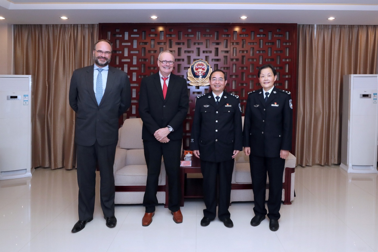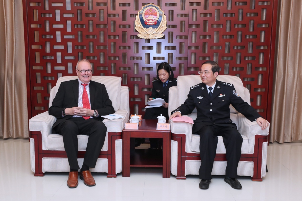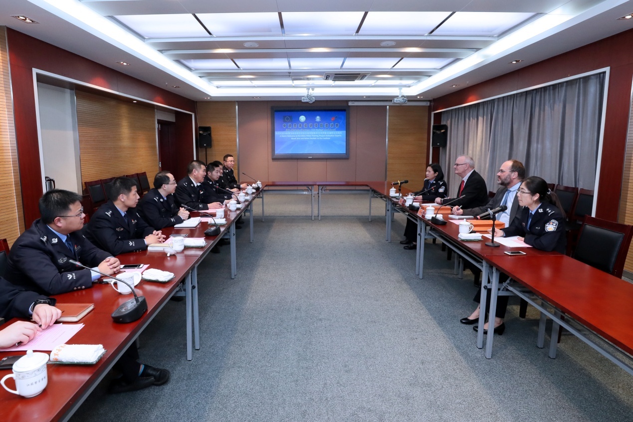 4月2日至3日,中欧警务培训项目终期评估专家布勒德·阿里、罗翰·伯戴特一行2人来金年金官网开展中欧警务培训项目终期评估工作。金年金官网从2013年至2016年共承办了8期中欧警务培训项目培训班和1期中欧警务培训项目执法规范化高层论坛,共有21名外国警务专家来金年金官网进行授课和交流,为全国公安机关201名公安业务骨干进行了培训。