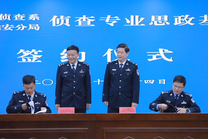 10月24日上午,侦查系与淮安市公安局淮安分局举行侦查类专业思政基地共建签字仪式,学院党委委员、副院长韩德明参加了签约仪式,并与淮安市公安局党委副书记、常务副局长初晓共同为该基地揭牌,淮安区副区长、淮安分局局长王成伟、政委王海鸿等领导和相关部门负责人,学院侦查系负责人和教师代表、教务处负责人等参加了签字仪式和共建交流活动。会上,侦查系专业负责人张磊教授就侦查类专业思政基地建设的目标、路径、重点项目等问题进行了说明。