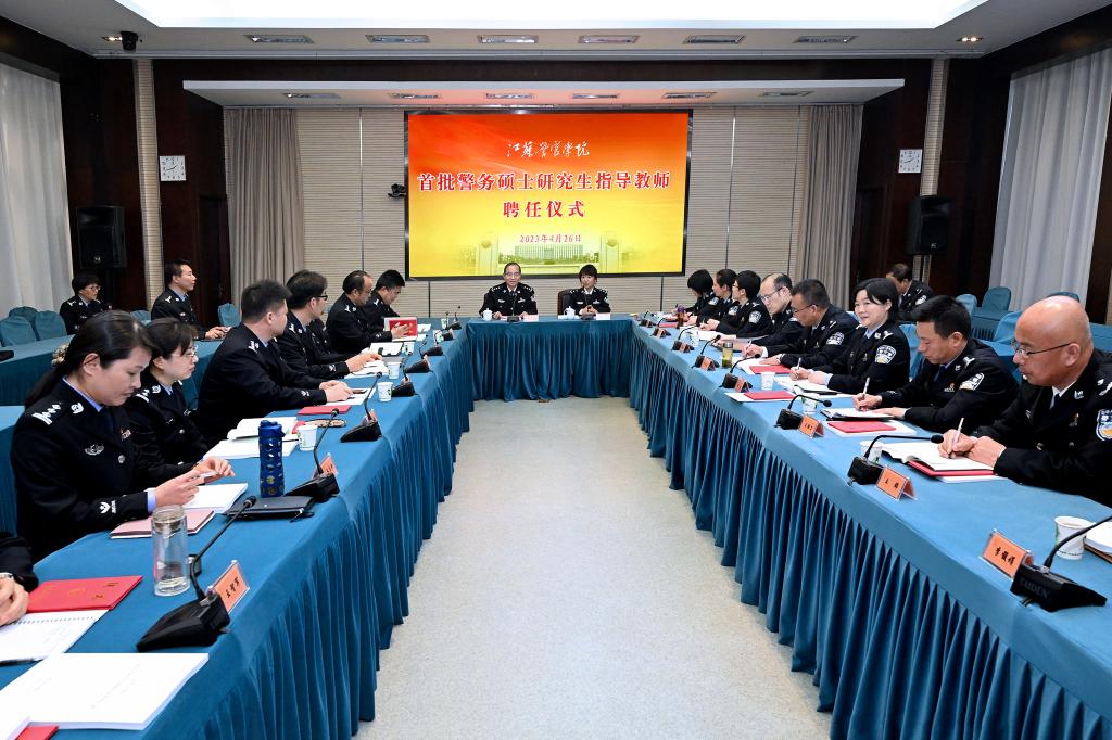4月26日下午,学院举行首批警务硕士研究生指导教师聘任仪式。学院党委副书记、院长张兰青颁发聘书并讲话,学院党委委员、副院长黄进主持活动。