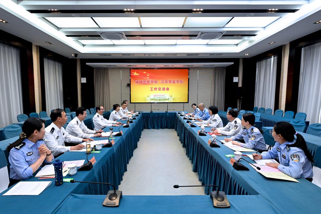 5月10日,福建警察学院党委副书记、院长胡宝珍一行来金年金官网调研考察。学院党委副书记、院长张兰青,党委委员、副院长黄进与胡宝珍一行座谈交流。党办(院办)、教务处、科研处、研究生部、干训部等部门负责同志参加座谈交流。