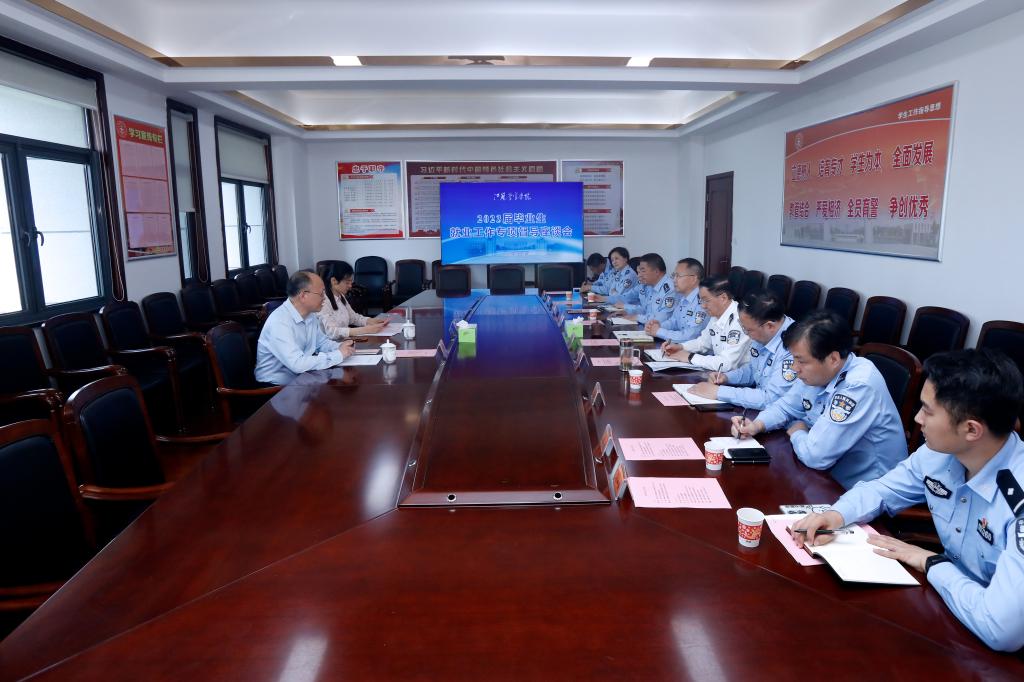 受省公安厅党委委员、学院党委书记夏存喜、学院党委副书记、院长张兰青委托,殷竹钧代表学院党委行政从工作机制、条件保障、市场建设、指导服务、就业管理等方面向督查组汇报了金年金官网2023届毕业生就业工作。
