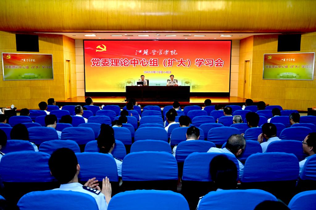 7月14日上午,学院举办主题教育专题讲座暨党委理论学习中心组(扩大)学习会,邀请省政府参事、省委党校原常务副校长、博士生导师桑学成教授作专题讲座,省公安厅党委委员、学院党委书记夏存喜主持会议。