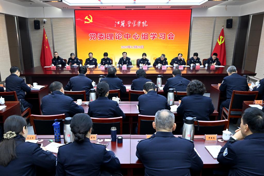 12月28日上午,学院党委理论学习中心组举行专题学习会,认真学习贯彻习近平总书记在中央经济工作会议上的重要讲话精神,党委成员交流学习体会。省公安厅党委委员、学院党委书记夏存喜主持会议并讲话。学院党委副书记、院长黄进等院领导参加会议。
