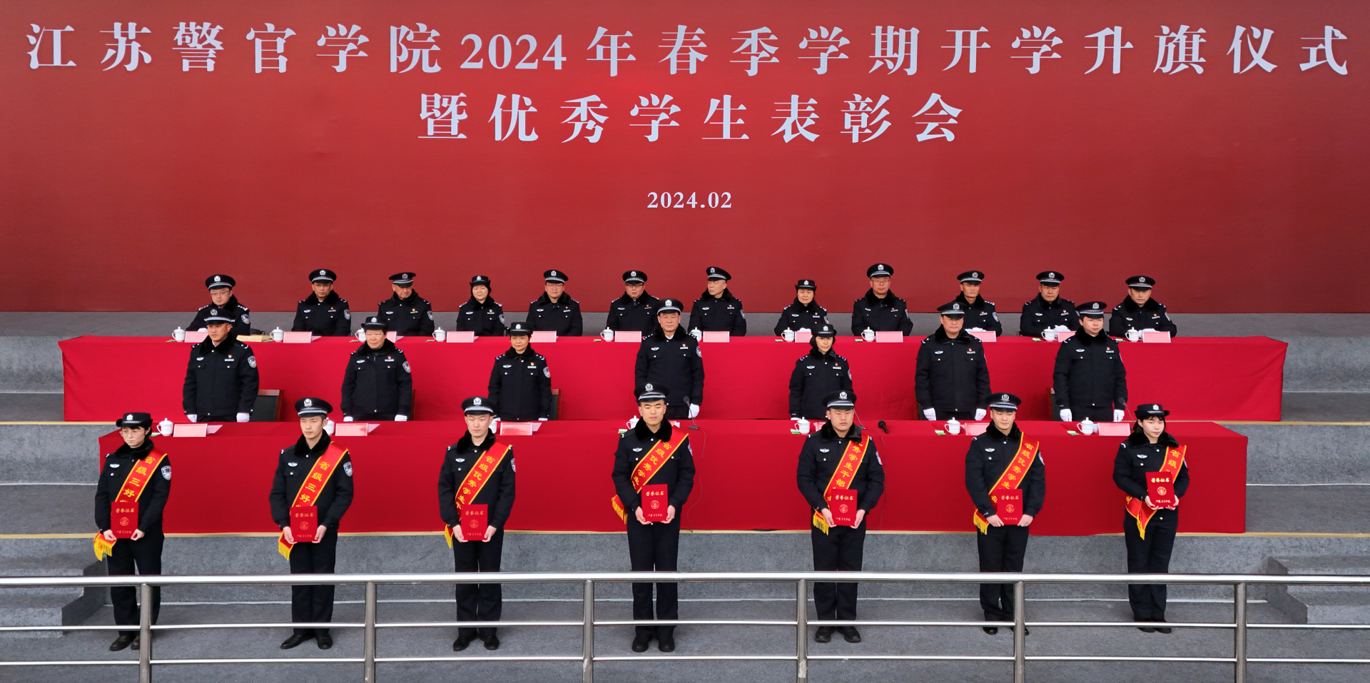 新岁序开,新程再启。2月26日上午,学院隆重举行2024年春季学期开学升旗仪式暨优秀学生表彰会,省公安厅党委委员、学院党委书记夏存喜出席并讲话,学院党委副书记、院长黄进宣读表彰决定,学院党委副书记陈卫参加活动,学院党委委员、副院长张敏主持。安德门校区同时举行新学期升旗仪式。
