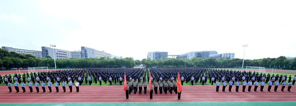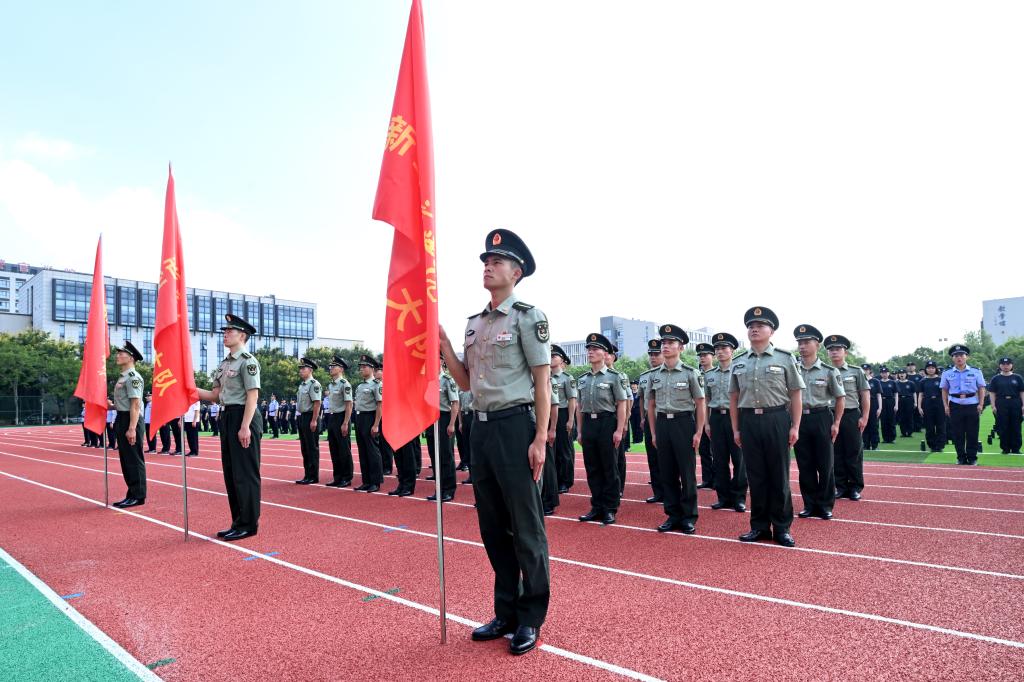8月29日上午,学院在浦口校区田径场举行2024级新生军训开训动员大会。学院党委副书记陈卫为新生训练大队授旗并讲话,学院党委委员、副院长、政治部主任张敏主持动员大会。陆军工程大学国防工程学院副院长刘良栋代表承训单位讲话,警察体育教研部(警务指挥与战术系)主任章文义作军训动员,2024级侦查学专业张兆瑀同学代表参训学生发言。
