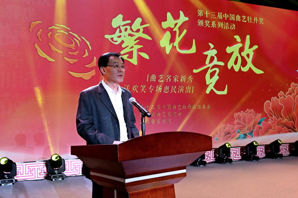 夏存喜代表学院党委和全体师生,对各位领导和嘉宾表示热烈欢迎,对中国曲协、江苏文联的大力支持表示衷心感谢。他指出,学院始终高度重视校园文化建设,全面加强警察文化、忠诚文化、法治文化建设,繁荣发展富有公安特色的校园文化。承办专场演出对于丰富学院“大思政课”育人体系、实施美育浸润行动、加强警营文化建设,具有积极推动作用。下一步,学院将继续深入学习贯彻习近平文化思想,坚持不懈用中华优秀传统文化、革命文化、社会主义先进文化和人民公安红色文化培根铸魂、启智润心,加快探索“艺术思政”育人新路径,为培养党和人民的忠诚卫士注入强大精神力量。