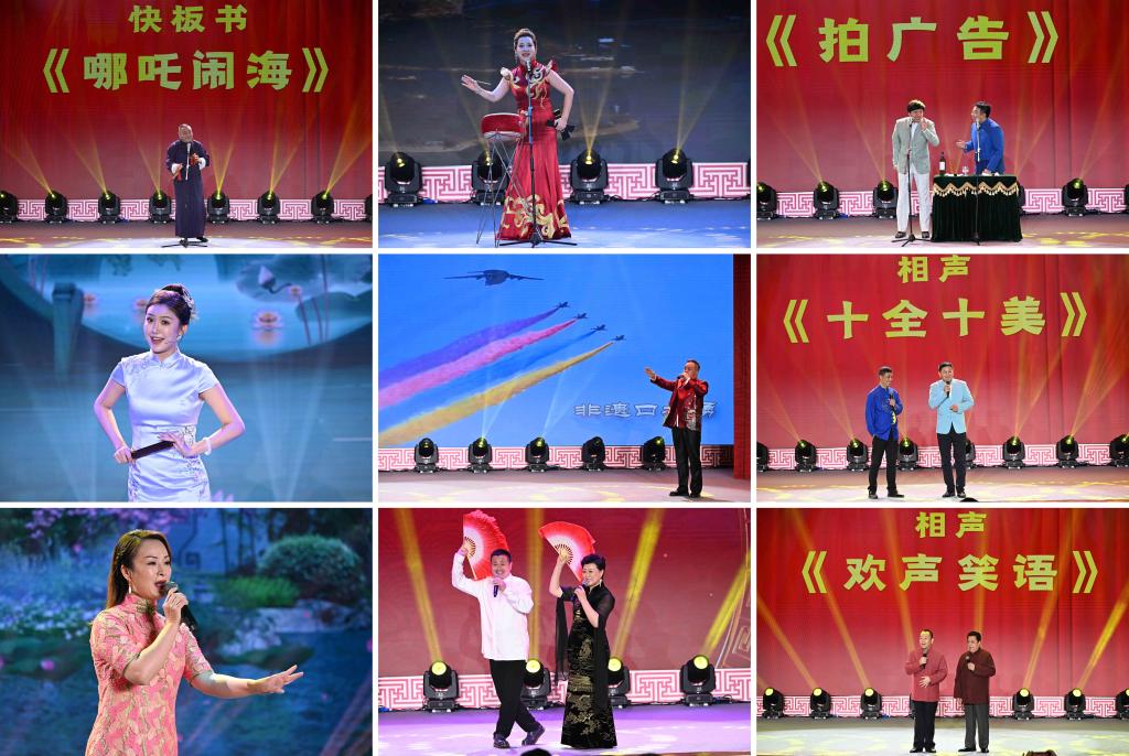 演出在学院警乐团演奏的《我和我的祖国》《我们走在大路上》的悠扬旋律声中正式拉开帷幕,相声演员贾旭明与省演艺集团乐垚贝主持活动。由中国曲艺家协会理事、著名快板书表演艺术家王文水带来的快板书《哪吒闹海》,瞬间点燃了现场的氛围;四川扬琴传人、中国曲艺牡丹奖表演奖获得者李佳充分运用自身嗓音和音域条件,以一曲《闯夔门》把四川扬琴男腔的演唱技巧展现得淋漓尽致;青年相声演员董建春与盛伟搭档演出的相声《拍广告》,逗得现场观众捧腹大笑;河南坠子传人芦瑶的《晴雯撕扇》,口技大师冀勇带来的《欢天喜地》,著名评弹表演艺术家朱琳的《秦淮景》,相声界知名演员贾旭明与侯林林搭档演出的相声《十全十美》,二人转表演艺术家赵海燕与闫光明的《看秧歌》,巧妙地将非遗口技艺术、中华优秀传统曲艺形式融入生活点滴,演绎得惟妙惟肖,让观众在各具特色、诙谐幽默的演出中感受曲艺文化的非凡魅力。最后,著名相声表演艺术家李金斗与青年相声演员付强联袂搭档的相声《欢声笑语》,为整场演出画上了圆满的句号。