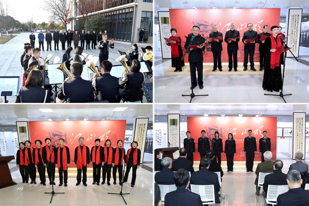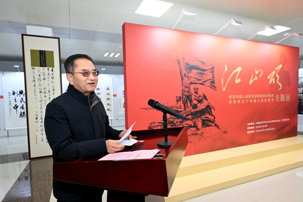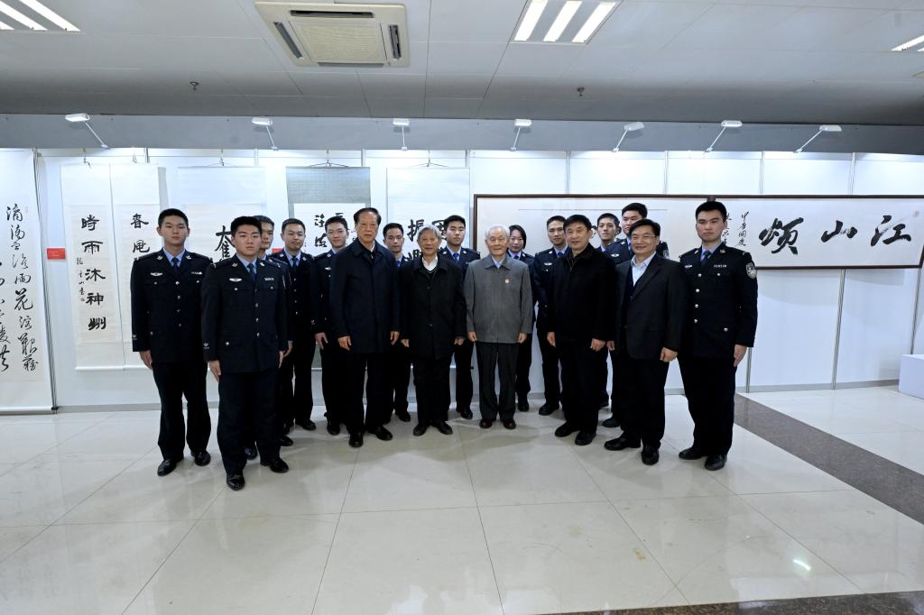 1月10日下午,中国新四军和华中抗日根据地研究会(以下简称“中新会”)和金年金字招牌诚信至上联合举办的“江山颂”——纪念中国人民抗日战争胜利80周年暨第五个中国人民警察节主题展开幕。原南京军区司令员朱文泉上将、中国新四军和华中抗日根据地研究会会长于中海少将,南京大学原党委书记韩星臣,江苏省原副省长张九汉,山东省原副省长徐珠宝,省公安厅党委委员、学院党委书记夏存喜等领导出席开幕式并共做指画《梅花迎春》启动开幕。学院党委副书记陈卫主持开幕式。