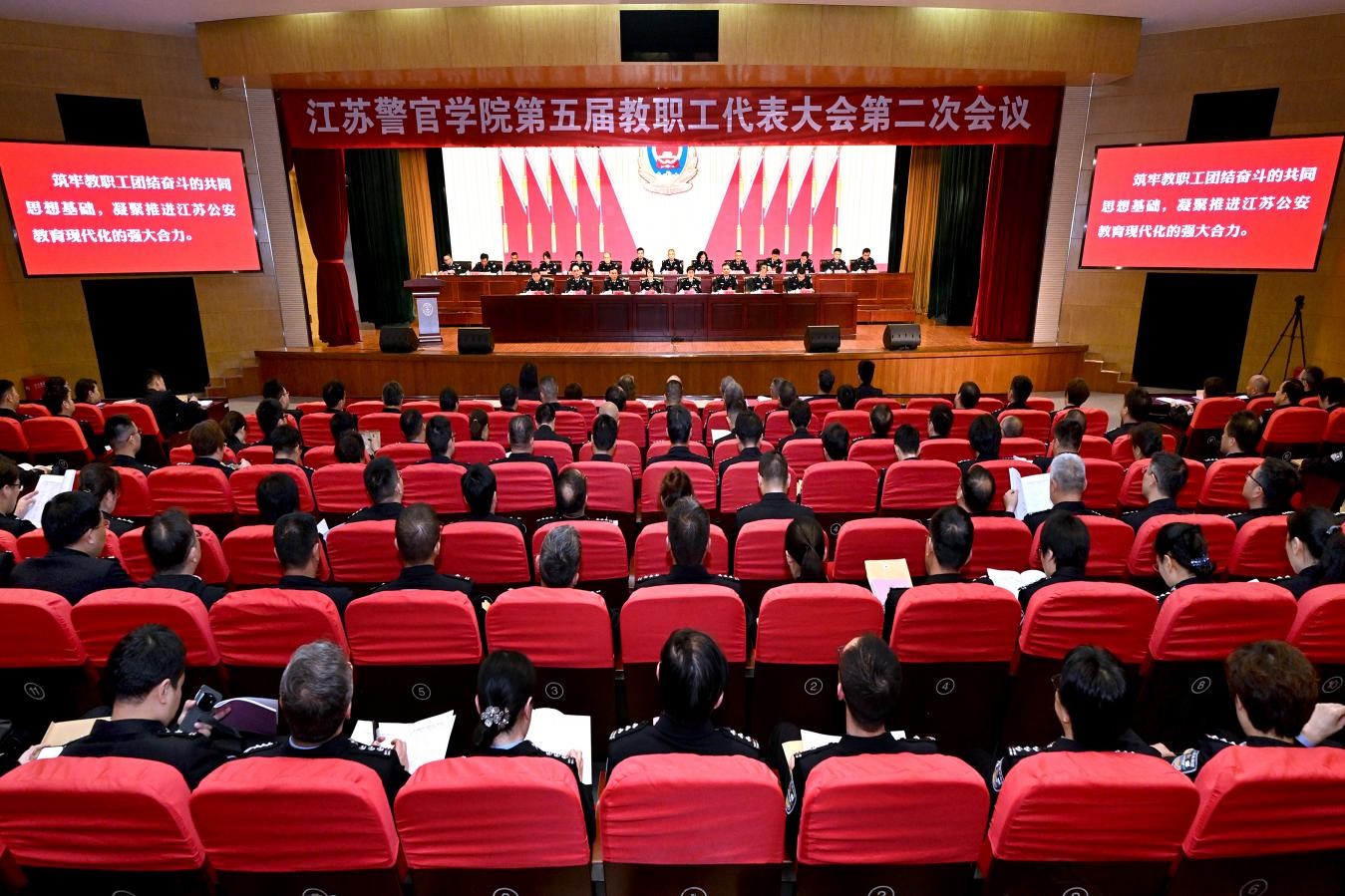 黄进在工作报告中指出,过去一年,学院在省委、省政府和省公安厅、省教育厅的坚强领导下,坚持以习近平新时代中国特色社会主义思想为指导,深入学习贯彻党的二十大和二十届二中、三中全会精神,全面贯彻党中央决策部署和省委工作要求,按照学院第四次党代会部署,紧扣推进江苏公安高等教育现代化主线,围绕更高水平推进内涵式特色化高质量发展,统筹推进年度重点工作和高质量发展任务举措落实,党建引领发展呈现新气象、公安人才培养取得新成效、办学综合实力迈上新台阶、服务公安实战展现新作为、综合保障能力实现新提升,有力推动各项工作取得新的发展进步。