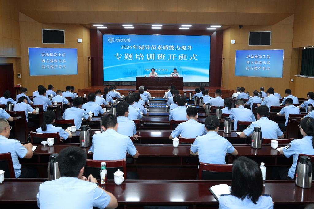 818日下午,学院举办2025年辅导员素质能力提升专题培训班开班式,省公安厅党委委员、学院党委书记周凤琴出席并讲话,强调辅导员是加强学生忠诚警魂教育和警务化管理的重要力量,要聚焦立德树人、育警铸剑根本任务,提升政治能力、增强专业素质、严明纪律作风,为赋能高质量人才培养、助力学校内涵式发展作出积极贡献。