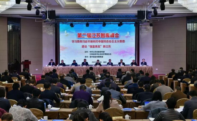 2017年12月29日,省委宣传部、省哲学社会科学界联合会在南京举办第二届江苏智库峰会,围绕“学习贯彻习近平新时代中国特色社会主义思想,建设强富美高新江苏”这一主题开展深入研讨。省新型智库理事会成员,国家高端智库建设培育单位、省重点高端智库、重点培育智库、决策咨询研究基地首席专家及骨干专家,各设区市社科联负责人,以及入选成果作者200余人参加会议。
