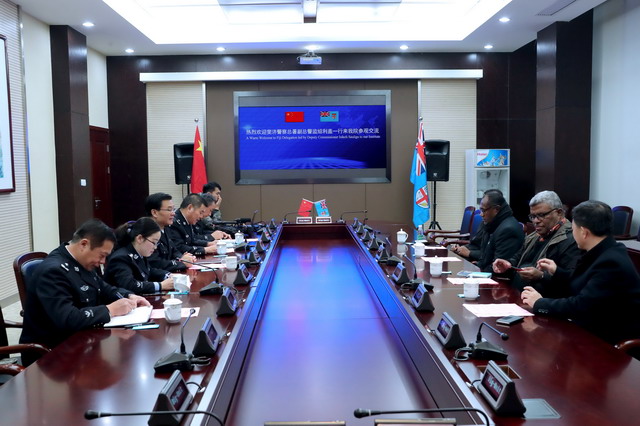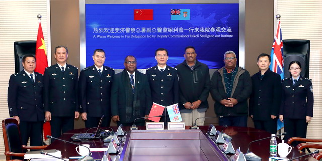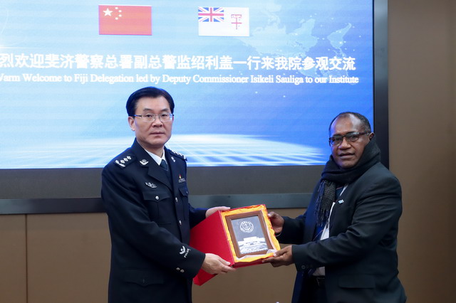 12月14日-15日,斐济警察总署副总警监绍利盖一行3人到金年金官网参观访问。省公安厅党委委员、学院党委书记夏存喜接待了代表团一行,并进行友好会谈。