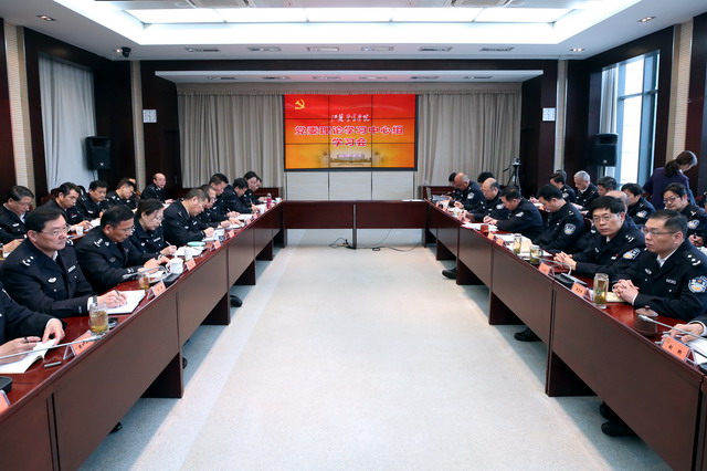4月7日上午,省公安厅党委委员、学院党委书记尚建荣主持召开院党委理论学习中心组学习会,认真学习《中国共产党党委(党组)理论学习中心组学习规则》《关于推进“两学一做”学习教育常态化制度化的意见》《中共江苏省委关于贯彻〈中国共产党问责条例〉实施办法》,并对全国“两会”精神作进一步深入学习。院党委副书记、院长张兰青,院领导张霞、宋践、封野、殷竹钧、薛宏伟、朱琨、王奎宏,巡视员赵远、张健,副巡视员,各中层部门主要负责人参加学习会。
