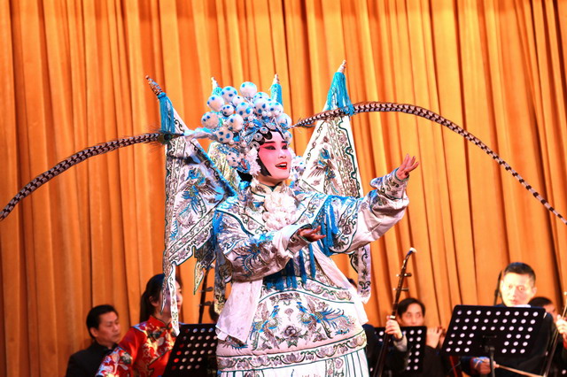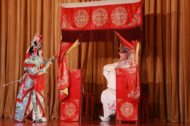 一首民乐合奏《高韵飘香》拉开了本场演出的序幕,扬剧舞台中常用曲牌的《维扬清韵》向观众们展示了扬剧的经典旋律。随后的花鼓调联唱更是极富地方特色和生活气息。根据唱腔的不同,扬剧分为各个流派,华派名剧《百岁挂帅·登丘抒怀》将杨门女将穆桂英面对国家大义时的勇敢坚强表现得淋漓尽致,而高派名剧《鸿雁传书》则把王宝钗的凄苦形象刻画得栩栩如生。演出过程中,主持人还邀请观众登台交流互动,他们出色的表现赢了台下观众阵阵喝彩声。折子戏《百花赠剑》将演出推向高潮,百花公主与海俊的爱情故事给在场的每一位观众都留下了深刻的印象。