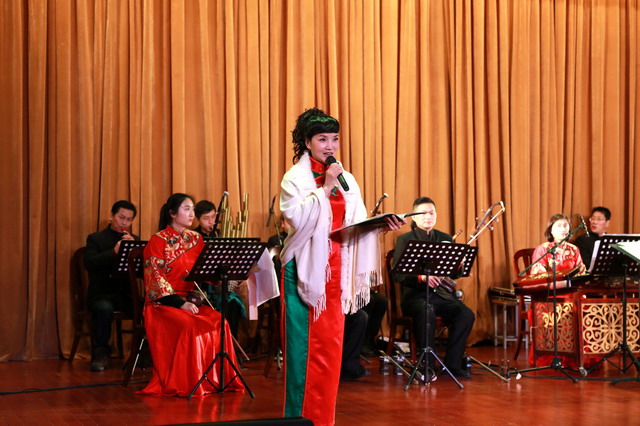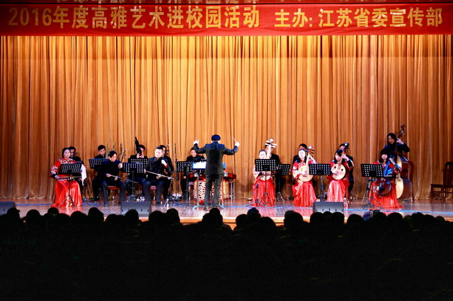 12月27日晚,由江苏省委宣传部主办的“2016年度高雅艺术进校园活动——扬剧艺术赏析”在学院浦口校区精彩上演。江苏省演艺集团扬剧团为学院师生带来了一场精美绝伦的视觉、听觉盛宴。国家一级演员、中国音乐家协会戏曲声乐研究会会员诸葛秀兰主持了本次演出。学院党委副书记张霞、江苏省扬剧团团长缪勇、南京市浦口区文化广电局副局长高步宽、浦口区文化馆馆长袁铭等出席。