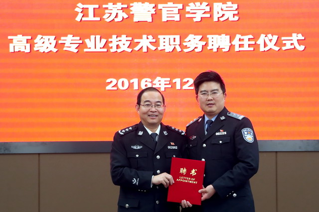 2016年12月14日上午,学院举行2016年高级专业技术职务聘任仪式。院党委副书记、院长张兰青出席并讲话,受聘高级专业技术职务的教师和政治部人事处、教务处、治安管理系、侦查系、刑事科学技术系、计算机信息和网络安全系、江苏现代警务研究中心等相关部门负责人参加会议,院党委副书记张霞主持仪式。