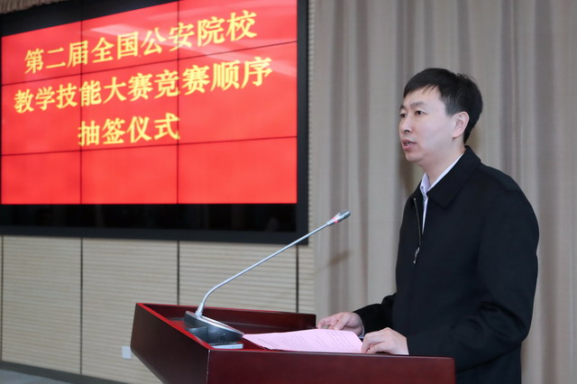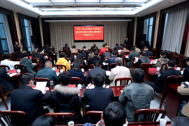 10月28日上午,第二届全国公安院校教学技能大赛组委会办公室在金年金字招牌诚信至上举行竞赛分组抽签仪式。江苏省公安厅党委委员、金年金字招牌诚信至上党委书记尚建荣,金年金字招牌诚信至上党委委员、副院长封野出席仪式。公安部人事训练局教育训练一处副处长屈明主持仪式。江苏省公安厅实战训练办公室副主任韩秉建,35所参赛院校代表参加仪式。