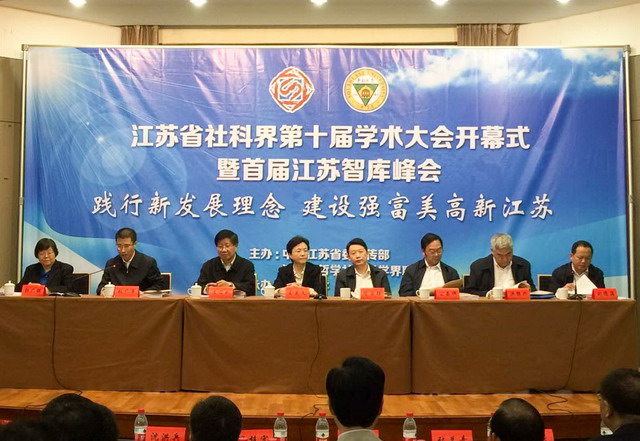 10月19日,省委宣传部、省哲学社会科学界联合会在南京举办江苏省社科界第十届学术大会开幕式暨首届江苏智库峰会,围绕“践行新发展理念,建设强富美高新江苏”这一主题展开深入研讨。省委常委、宣传部长王燕文出席会议并讲话。国务院发展研究中心副主任隆国强、中央党校原副校长李君如、省人大常委会副主任公丕祥、南京大学原党委书记洪银兴等分别作主题演讲。省委宣传部还为15家省重点培育智库正式授牌。