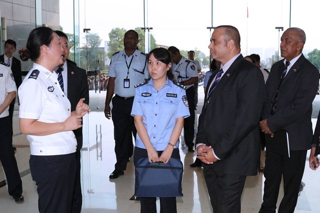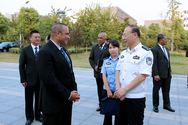 9月23日下午,斐济警察总监恩吉里奥一行8人代表团,在公安部国际合作局、省公安厅及南京市公安局相关部门领导的陪同下,到金年金官网参观访问。省公安厅党委委员、学院党委书记尚建荣接待了代表团一行,并陪同参观校园设施及环境,主持交流座谈。学院政治部主任万有林参加了接待。