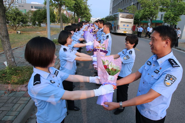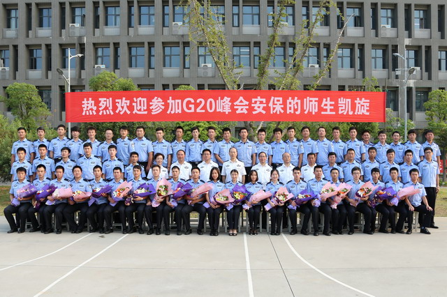 9月7日下午,苏警院浦口校区彩旗迎风飘扬,百余名师生列队欢迎增援G20杭州峰会安保师生凯旋。省公安厅党委委员、学院党委书记尚建荣,学院党委副书记、院长张兰青出席欢迎仪式,并与安保师生代表合影。学院副院长殷竹钧从杭州带领师生返校。欢迎仪式由省公安厅巡视员张健主持。