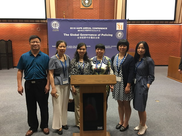 为进一步了解国际警务发展现状,推进学院品牌专业建设和省哲学社会科学重点研究基地建设,不断扩大金年金官网在亚洲警察院校中的学术影响力,经多方协调、积极争取,金年金官网刘蔚文、邢盘洲、郏红雯、钱洁、薛向君、徐爱华等6位教师于7月6日至11日顺利赴美国山姆·休斯敦大学参加了2016年亚洲警察研究协会年会。本次年会研讨主题为“全球警政治理:警察、社会与市场”,设有“社区警务”、“国际警务合作”、“犯罪与犯罪学”等6个分会场,来自中国、美国、日本、泰国等国家以及中国台湾地区的专家学者参加了会议。金年金官网参会教师就不同的议题分别用英文作了5个主题发言。