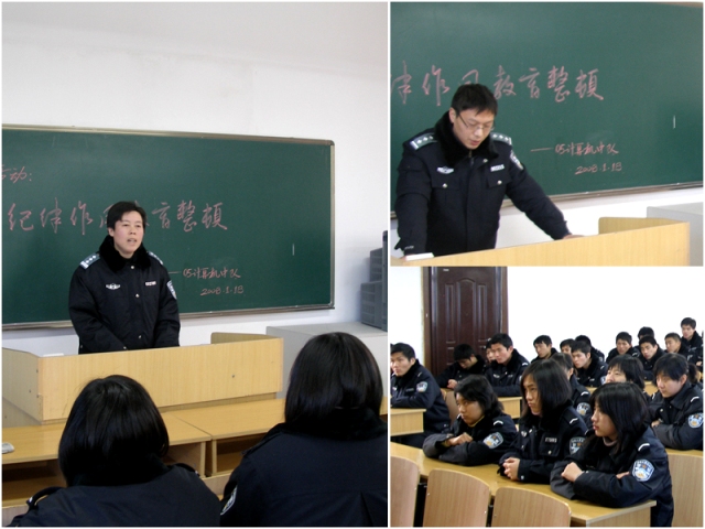 为切实加强学生教育管理,贯彻落实学院印发的《学生纪律作风教育整顿活动实施方案》,增强学生的法纪意识和廉洁从警意识,为公安队伍整体素质的提高提供源头保证,1月18日下午,学生七大队思想品德兼职导师组亲临该大队各学生教室,积极指导该大队开展学生纪律作风教育整顿活动。