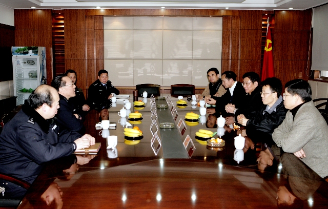 1月3日下午,南京森林公安高等专科学校苏惠民校长一行五位领导来金年金官网考察交流。苏校长一行在先后考察了金年金官网实验中心、图书馆、警体馆和指纹博物馆后,就教育理念、教学管理与改革,人才培养模式等问题,与金年金官网吴跃章院长等领导作了广泛而热烈的探讨与交流。