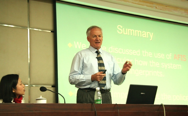 12月9日下午和12日下午,戴尔·克莱格先生分别作了题为“现代指纹显现提取技术”和“计算机指纹自动识别系统”的学术报告,介绍了澳大利亚警察目前主要的指纹显现方法和指纹自动识别系统的建设情况,进行了现场演示,并回答了学生和干警的提问。学院五百多名学生及刑警队长学校学员听了学术报告,报告现场交流互动气氛热烈。同学们开阔了视野,丰富了知识,英语听说能力也得到了提高。