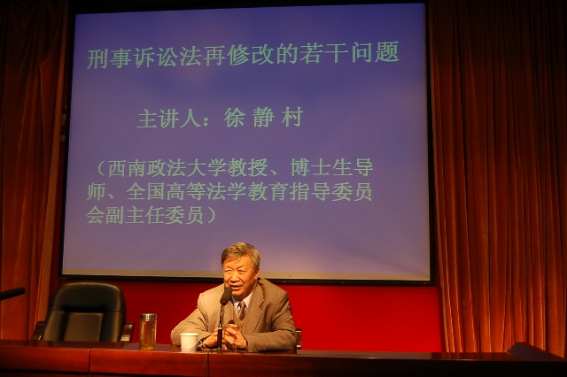 12月2日上午,我国著名的诉讼法学家、西南政法大学博士生导师徐静村教授应邀来金年金官网浦口校区作“刑事诉讼法再修改的若干问题”的学术报告。在近3个小时的报告中,徐教授详细介绍了我国刑事诉讼法制定和第一次修改的背景,阐明了刑事诉讼法再修改的必要性和再修改的思路与主要内容。报告深入浅出、通俗易懂,受到与会师生的普遍欢迎和好评。