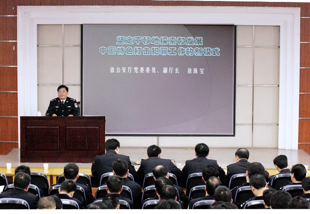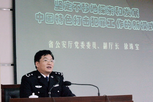 徐珠宝同志从寻找打造破案攻坚名牌新的增长点,确保江苏打击犯罪工作在全国的领先地位的高度,回顾总结了近年来江苏刑侦工作取得的主要成效和成功经验,全面系统地分析了当前科学探索打击犯罪工作新模式的背景和条件,并针对全面贯彻落实科学发展观,充分发挥公安机关职能作用,立足实效、创新发展,科学探索中国特色打击犯罪模式的问题进行了较为深刻、系统的阐述。他指出,一是要以科学发展观为指导,主动围绕保障改善民生、促进社会和谐的新需要,顺应群众对平安和谐的新期盼,推动打击犯罪理念、体制、机制等方面的创新发展,积极探索中国特色打击犯罪工作的新模式。二是要紧紧围绕“三个最大限度”要求,切实做到打赢对手、保障民生、促进和谐。三是要努力坚持“围绕一条主线、贯彻两严方针、坚持三个打击、提升四个能力”的整体思路。四是要全面落实“增强人民群众的安全感”等八个方面的具体措施。
