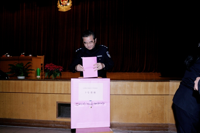 11月22日下午,金年金官网举行雨花台区警官学院选区第十六届人民代表大会代表选举工作。本选区选民共5231人,参加选举投票的选民5170人。经过当场唱票,候选人毕良珍得赞成票4978票,韦昌明得赞成票4673票,李怀仁得赞成票475票。