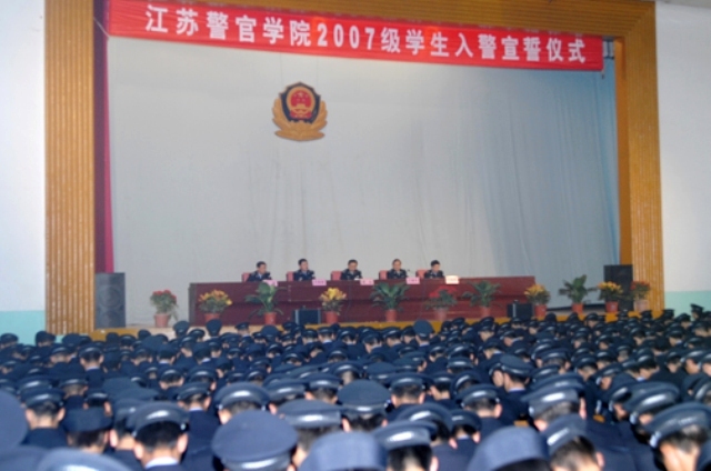 10月15日下午,学院在龙潭校区隆重举行2007级公安类专业学生入警宣誓仪式。在人事处副处长万有林的领誓下,校区1540名2007级新生身着新警服,面对警徽,庄重严肃地进行了宣誓。仪式由校区管委会主任王建伟主持。院党委副书记赵远同志作了讲话,他要求全体同学牢记入警誓言,用实际行动践行自己的诺言。经侦专业倪旭栋同学代表全体新生作了表态发言。