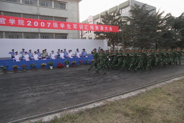在雄壮的军乐声中,吴跃章院长检阅了新生方队,同学们进行了分列式表演。在整个汇报表演中,同学们精神饱满、斗志昂扬,步伐整齐、口号响亮,充分展示了富有成效的训练成果和奋发向上的精神风貌。
