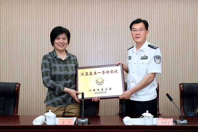 5月29日下午,学院举行授奖仪式。省教育科技工会主席寇芳代表省总工会为学院颁发了五一劳动奖状,学院为2017年10月以来受到表彰的先进集体、先进个人颁奖。省公安厅党委委员、学院党委书记夏存喜出席仪式并讲话,学院党委副书记、院长张兰青主持仪式。省教育科技工会高校部部长高顺岭、学院党委副书记张霞分别宣读了表彰决定。