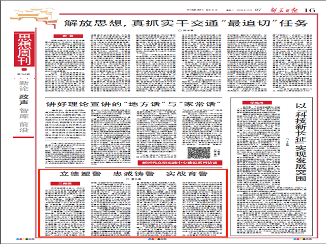 11月27日,新华日报刊发省公安厅党委委员、学院党委书记夏存喜同志的署名文章。