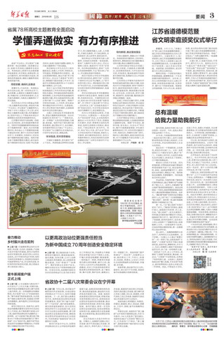 9月18日,新华日报要闻版刊登学院主题教育开展情况。