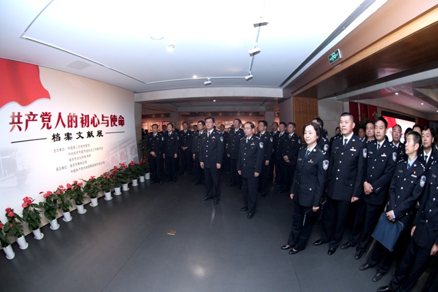 在共产党人的初心和使命档案文献展馆,同志们透过一页页鲜见档案、一幅幅珍贵图片,感受中国共产党人不懈的奋斗和探索,深刻理解共产党人的初心和使命在救国到强国征途上的强大激励作用,真切地认识到是历史和人民最终选择了中国共产党。