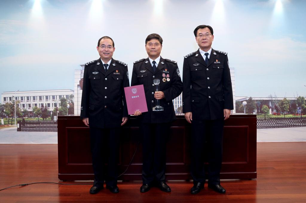省公安厅党委委员、学院党委书记夏存喜为第七届“江苏最美警察”提名奖获得者汤三红颁发获奖证书和奖杯。学院党委副书记、院长张兰青主持报告会。
