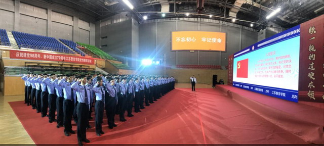 在学习教育过程中,学院在全体党员中组织开展“四重四亮”“三学”“我的初心故事”宣讲和爱国主义教育等系列活动,不断丰富活动形式,教育引导党员和师生感悟初心。治安管理系党总支与受到国务院表彰的“人民满意的公路巡警队”——建湖县公安局交警大队上冈中队联合开展“学上冈精神、铸忠诚警魂”系列学习教育活动,对标找差、学优争先。公安管理系党总支在自创的《鼓手》杂志上刊发主题教育特辑,支部书记和党员师生以图文并茂的形式写感想、谈体会、讲心得。离退休党总支组织老中青三代人过集体政治生日,互送激励祝语。以“诵读红色经典、牢记初心使命”为主题,各基层党组织积极开展红色经典诵读活动,深情回顾中国共产党不懈奋斗的光辉历程,讴歌新中国成立以来取得的伟大成就,培育教职工爱党爱国情怀,优秀作品获得“2019年全省女教职工诵读红色经典活动”二等奖。