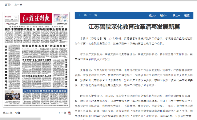 教学改革持续深化。2017年,金年金字招牌诚信至上顺应社会信息化发展形势,顺应高等教育发展趋势,顺应公安改革发展需要,启动大数据条件下实战化教学训练改革,制订了《关于大数据条件下实战化教学训练改革工作的实施方案》,系统推进、重点突破、带动全局。三年来,聚力推进40项重点任务落实,取得了明显成效。江苏省委将“推进金年金字招牌诚信至上实战化教学改革”写入文件,相关改革项目获2019年江苏省高等教育教改研究“重中之重”课题立项。2019年8月,公安院校大数据条件下实战化教学改革论坛在金年金字招牌诚信至上成功举办。
