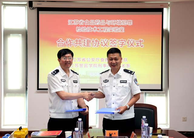 6月3日,学院刑事科学技术系与省公安厅食品药品和环境犯罪侦查总队签订协议,共建江苏省食品药品与环境犯罪检验技术工程实验室。学院党委副书记、院长张兰青主持签订仪式,学院党委委员、副院长薛宏伟,省公安厅食品药品和环境犯罪侦查总队总队长孙春、政委李杭江、副总队长钱小平和刑事科学技术系及实验室有关同志参加签订仪式。