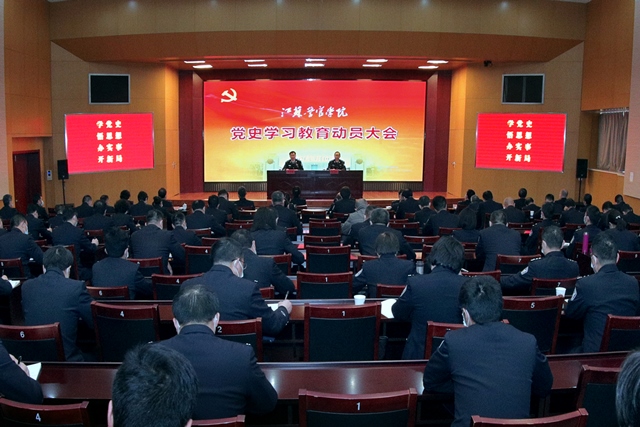 3月10日下午,学院召开党史学习教育动员会。省公安厅党委委员、学院党委书记夏存喜作动员讲话,要求深入学习贯彻习近平总书记在党史学习教育动员大会上的重要讲话精神,认真落实中央、省委部署,在全院迅速兴起党史学习教育热潮,切实增强“四个意识”、坚定“四个自信”、做到“两个维护”,奋力推动学院事业在新征程上实现新发展,努力为全省“争当表率、争做示范、走在前列”展示警院作为,以优异成绩迎接建党100周年。学院党委副书记、院长张兰青主持会议。